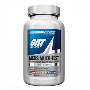 Gat Sport Men's Multi+Test Vitamin, a supplement rich in vitamins and minerals that supports testosterone and multiple energy with the addition of men's virility component, Tribulus terrestris. To support athletes due to vitamin and mineral deficiencies to support physical and sexual health
