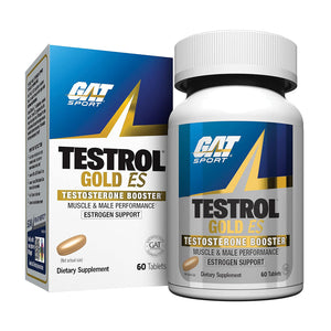 GAT Testrol Gold ES specialty men’s testosterone booster. This advanced formula naturally supports male performance, endurance, strength and testosterone, with the added benefit of hormone regulators.